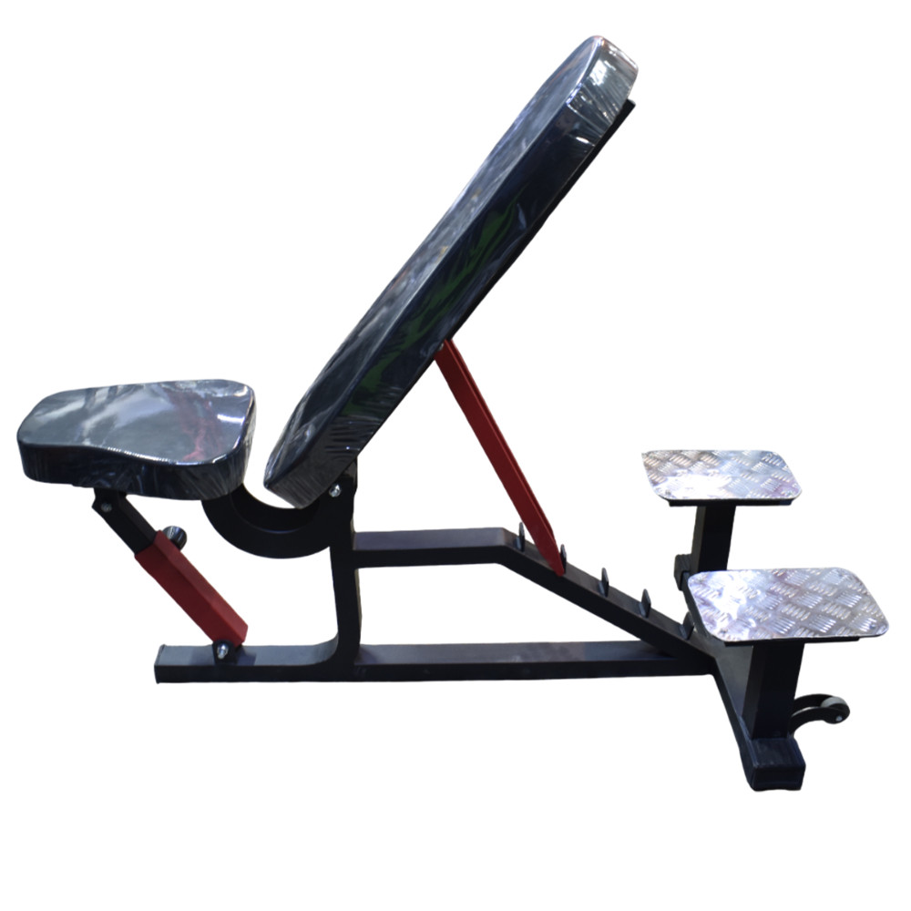 نیمکت باشگاهی مدرج معرفی شده در این بخش دارای طول پشتی 80 سانتی متر و طول نشیمنگاه 30 سانتی متر می باشد. مزیت نیمکت کمکی دار طرح اینپارس ASM ، متحرک بودن پشتی آن بوده بطوریکه می توانید تا 90 درجه آن را تنظیم نمایید. همچنین در پایین صندلی محلی برای قراردادن پا وجود دارد که در حرکاتی مثل زیر سینه و دراز و نشست می توانید از آن بهره ببرید.