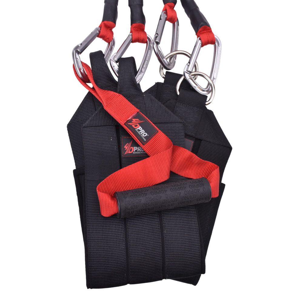 6- پدهای نئوپرن فور دی پرو که لایه داخلی آن از فوم نرم ساخته شده که هنگام تمرین مناسب بدن و آزار دهنده نباشد، در این مدل حلقه های فولادی حذف تا هم از سر صدای زمان تمرین جلوگیری شود و هم اینکه در زمان اتصال به کارابینهای آلومینیومی هم جهت بوده تا هنگام تمرین آزار دهنده نباشد.